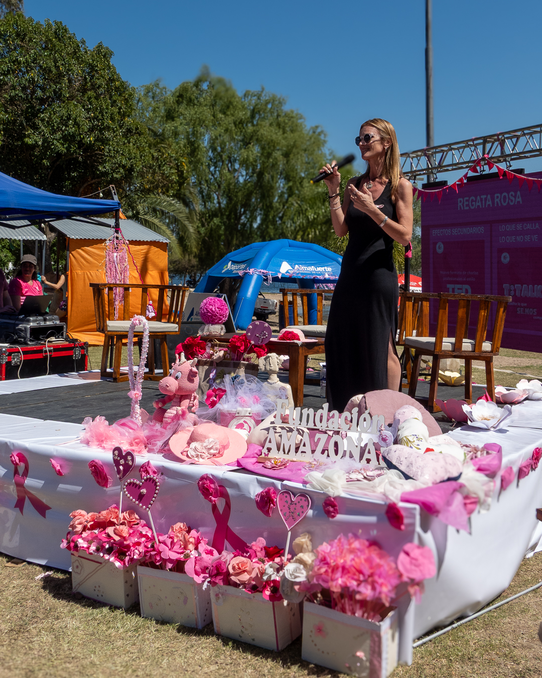 Además, como cada año, la AOCC se sumó a las acciones de las organizaciones que trabajan en prevención, acompañamiento y promoción de la salud. En la VIII Regata Rosa de Amazonas Córdoba, la Dra. María Eugenia Pacher, en representación de la Asociación, ofreció una charla tipo “Tetalk” sobre efectos adversos de los tratamientos oncológicos, junto a profesionales de distintas disciplinas. También acompañó el evento la Verónica Vera, integrante de la Comisión Directiva. El encuentro, cargado de emoción y simbolismo, incluyó la tradicional ceremonia de la “Nube Rosa”, reafirmando valores como la resiliencia, el compañerismo y el trabajo intersectorial.