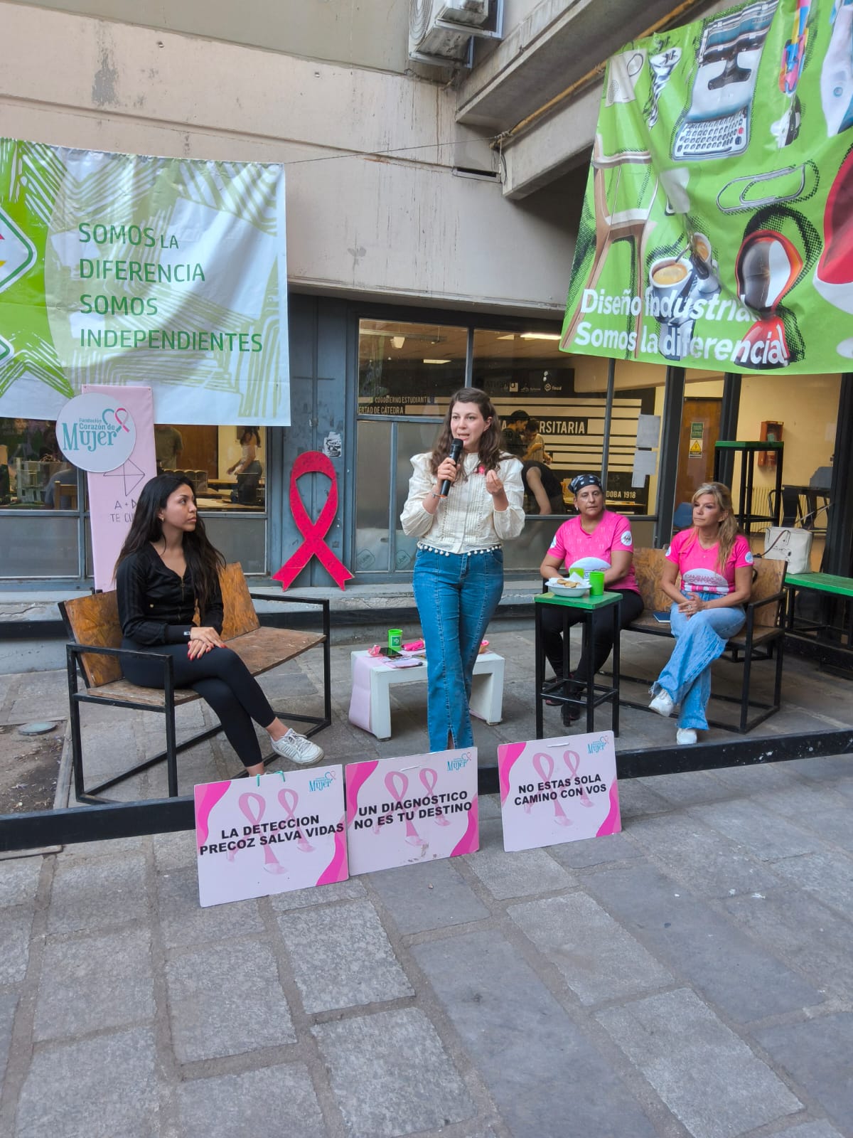 Asimismo, formó parte de la 12ª edición de “Caminamos con vos”, organizada por la Fundación Corazón de Mujer, con un stand informativo y la participación en el lazo rosa humano más grande del país, una iniciativa para visibilizar la importancia de los controles periódicos. En colaboración con la misma fundación, se realizaron dos charlas abiertas a la comunidad: una en la Facultad de Arquitectura, Urbanismo y Diseño de la UNC, a cargo de la Dra. Berenice Rodríguez, y otra en el Comando de Acción Preventiva I, dependencia de la Policía provincial, con la Dra. Claudia Martín, ambas orientadas a promover la detección temprana.