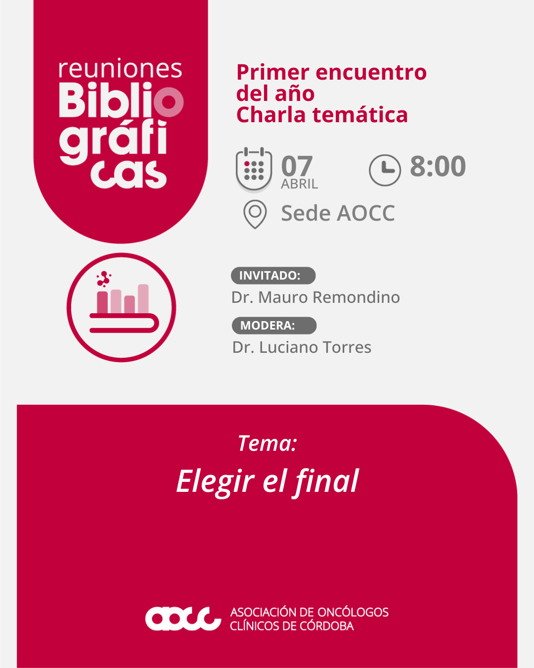 Primera reunión de 2026 de este ciclo de encuentros en los que, junto a residentes en formación en oncología y radioterapia, repasamos artículos científicos de reciente publicación o alto impacto. Además, periódicamente, abordamos temáticas de interés con especialistas invitados. Las reuniones se realizan todos los martes, de forma presencial, en la sede de AOCC. Este […] |